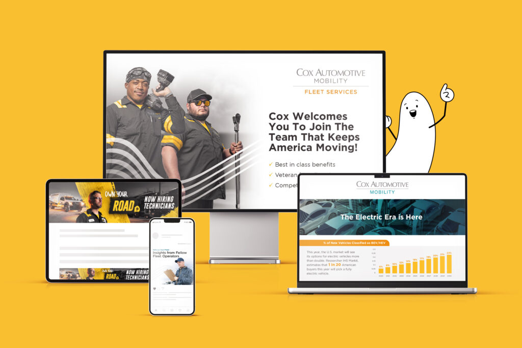 Cox Enterprises has an internal design agency, which is fantastic at developing their large-scale marketing campaigns. Yet, like many in-house design teams, they serve the entire family of Cox brands, so Georgia and Dave’s projects compete with multiple departments, which means long turnaround times and limitations when trying to move fast.
