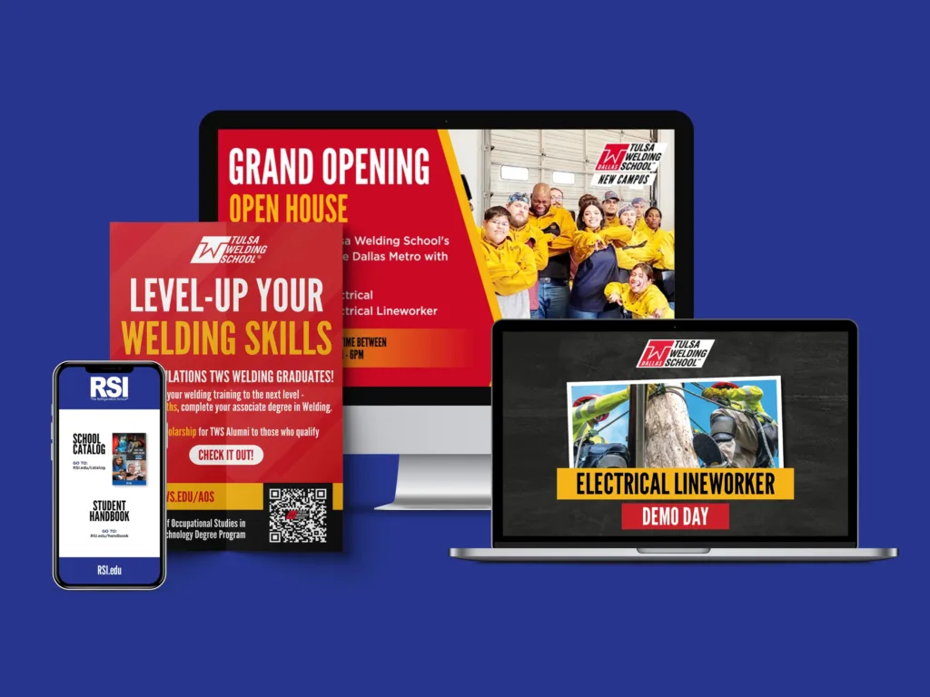 While a good problem to have, StrataTech’s growth brought with it the need for additional design support. The company realized managing design projects for 2 schools across 5 campuses in addition to the StrataTech brand, was becoming increasingly difficult. They were already working with a designer they trusted to lead branding and larger initiatives, but often felt outstretched, especially while tackling multiple campaigns. To accommodate, Calvin and his team would have to ruthlessly prioritize projects or occasionally, create graphics in Canva. As their backlog of design projects grew, they knew they needed another resource to lean on, but were hesitant to invest in another freelance designer or agency.